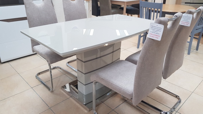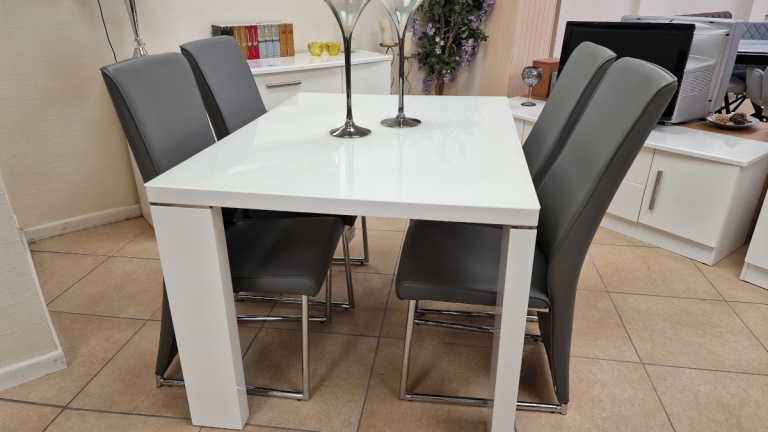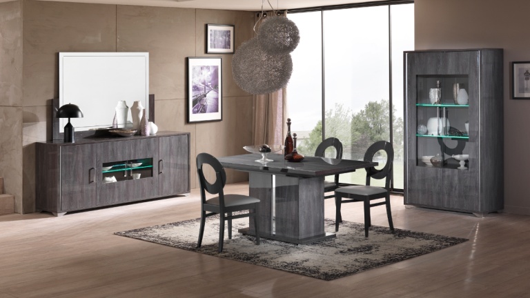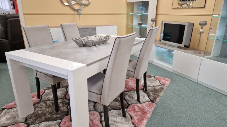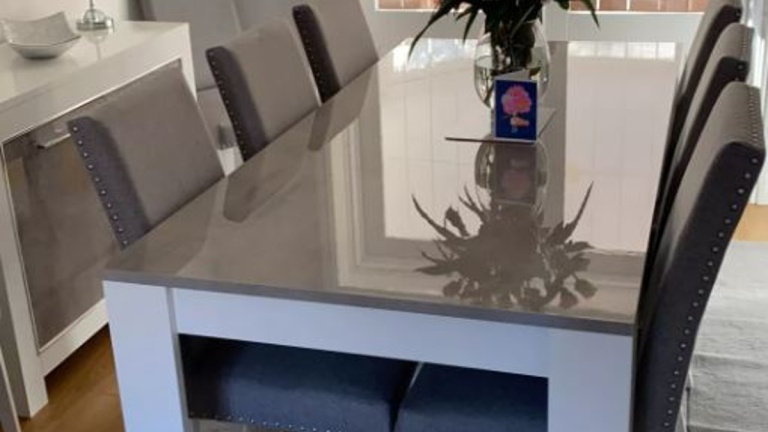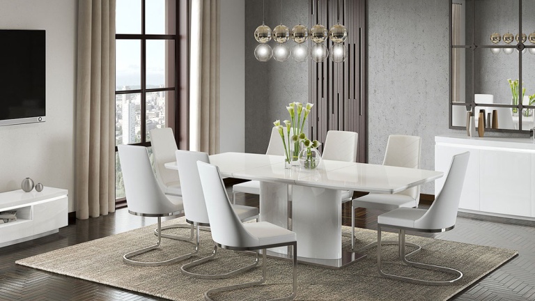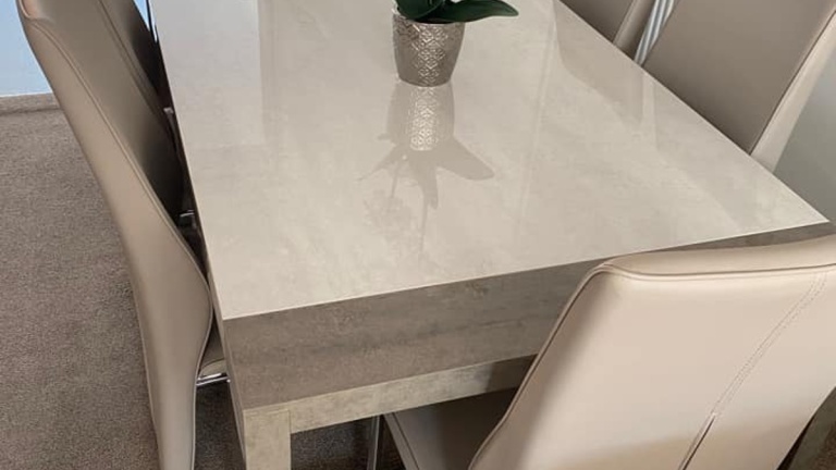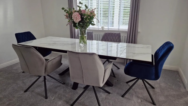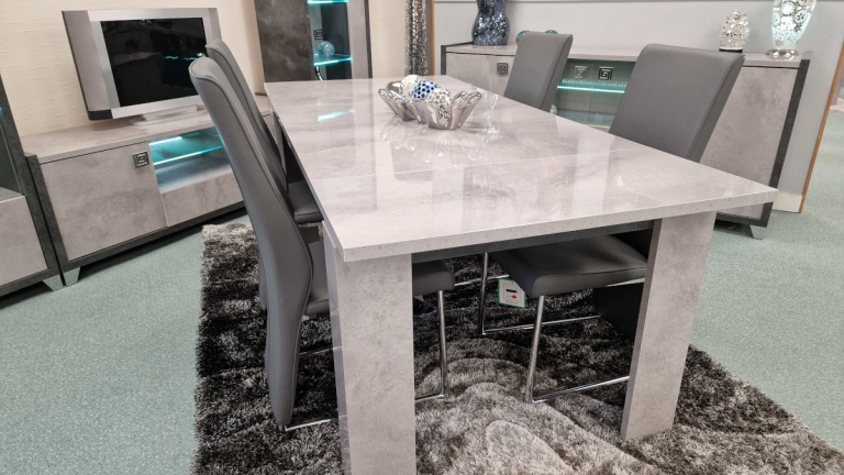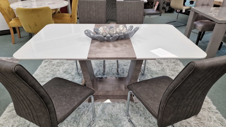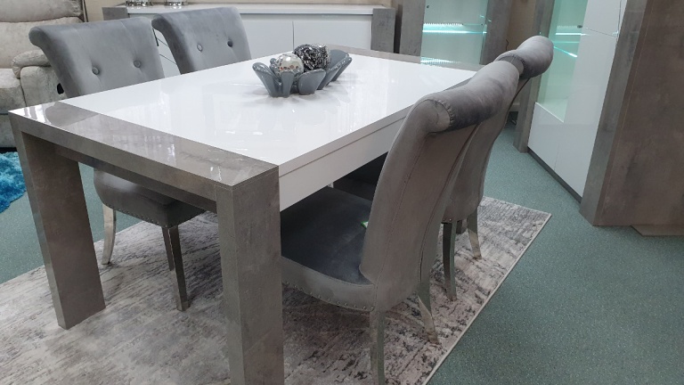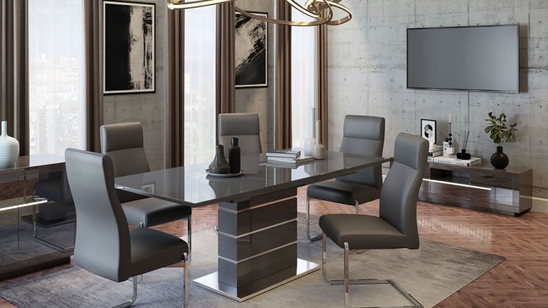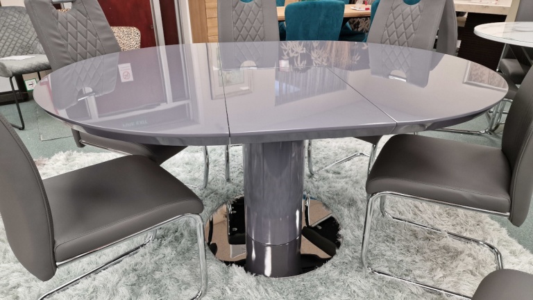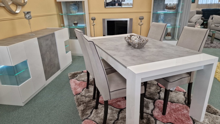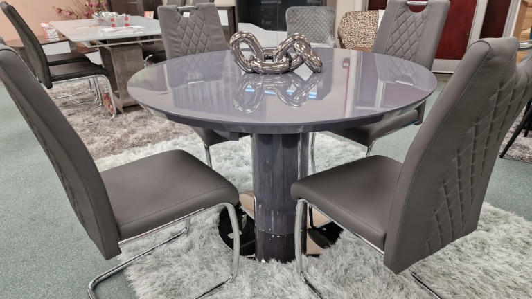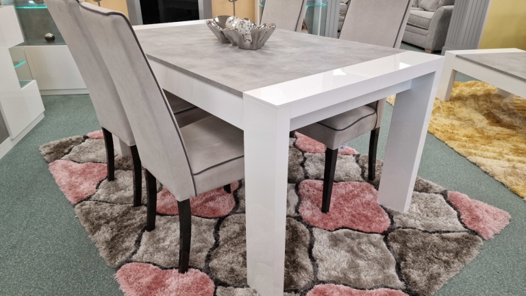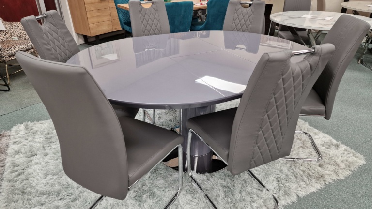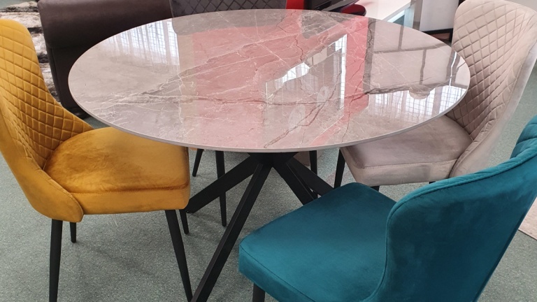 Our dining tables are available in a variety of colours and materials including glass, high gloss, marble, metal, brushed aluminium, stone, granite, wood veneer, solid oak and pine so there is a finish to suit every home. Table construction also differs with a variety of legs or bases ranging from traditional to modern, with standard legs to mirrored finishes or sculptural designs. Many tables and their bases feature mixed materials and finishes for example high gloss paired with marble or metal accents to offer a standout aesthetic that can be both classic and contemporary. Our dining tables are available in most colours.