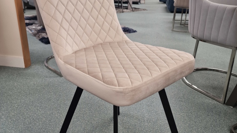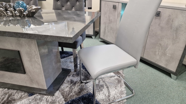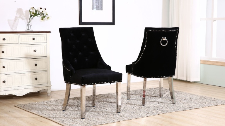 Our dining chairs are also available in a wide range of colours and materials including leather, imitation / faux leather, Polyurethane, PVC, chrome, high gloss, wood veneer, solid oak and fabric chairs. There is a huge choice of fabric chairs alone with several finishes available from velvet, crushed velvet and chenille and prints from stripes to florals as well as a multitude of plain colours.
