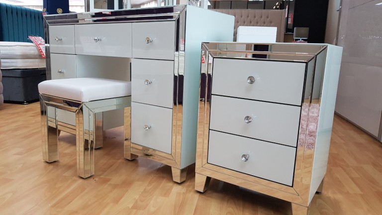 We have a number of dressing tables & Make-up Desks to choose from in a variety of colours and finishes from a traditional solid wood, foil, veneer and solid oak to a more contemporary high gloss, matte finish or glass / mirrored front dressing tables.