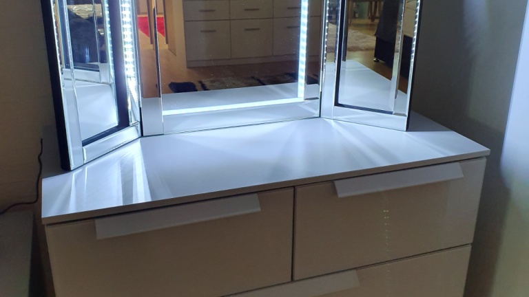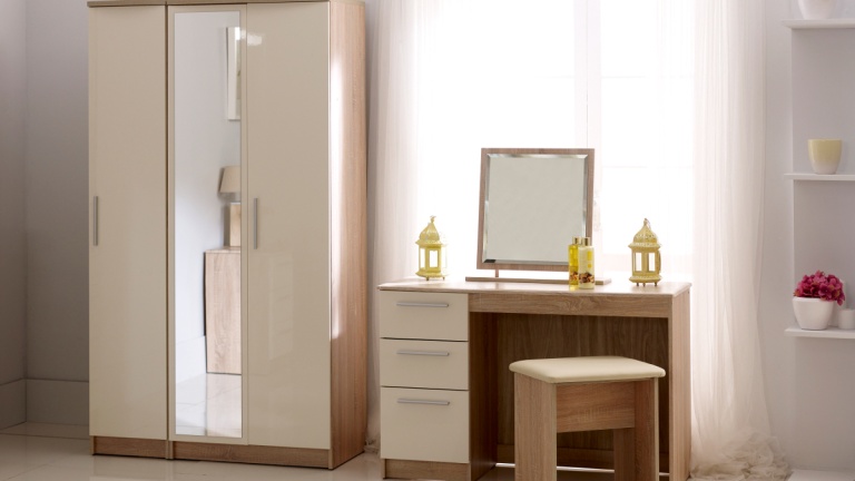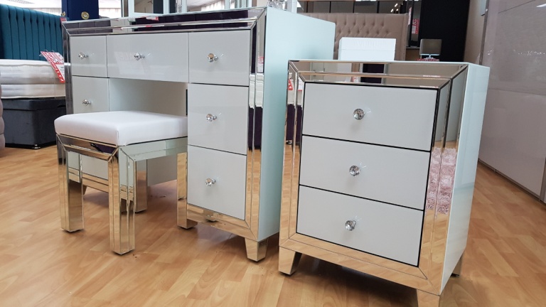 We have a number of dressing tables & Make-up Desks to choose from in a variety of colours and finishes from a traditional solid wood, foil, veneer and solid oak to a more contemporary high gloss, matte finish or glass / mirrored front dressing tables.