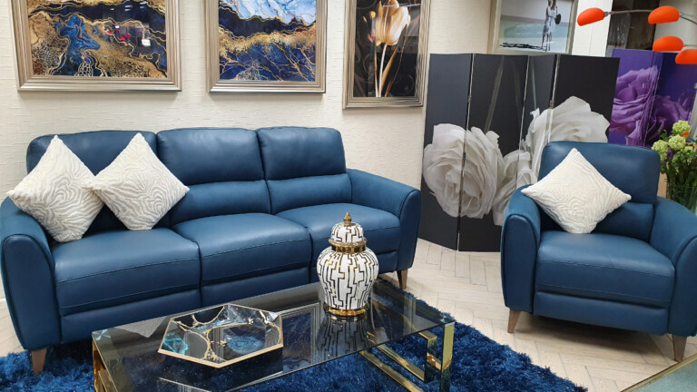 We have an extensive range of leather sofas on display from fixed sofas to corner groups, chaise sofas, sofa beds and manual reclining and power reclining leather sofas as well as lift and rise chairs, wingback chairs, fireside chairs, swivel chairs and rocking chairs. Our sofas are also available in a variety of styles and shapes from the classic and timeless Chesterfield or Queen Anne to a modern curved sofa.